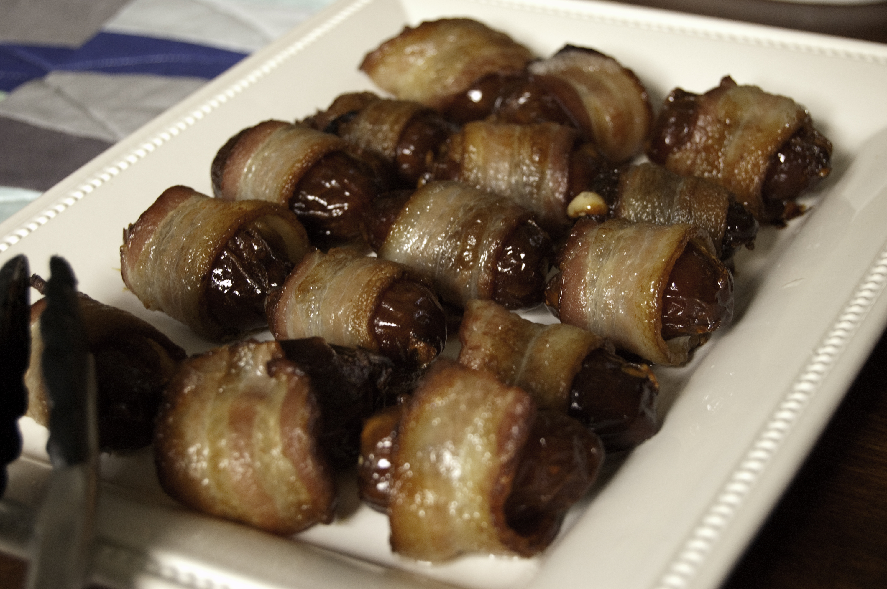 We ate Guinness and Cheddar Cheese Spread, Sea Salt Caramel Filled Brownie Cookies (better without the caramel just with some salt sprinkled on top), chai panna cotta with honey jelly, parmesan stuffed bacon wrapped dates, cheesy zucchini and red onion flatbread, and of course champagne to go with the luxury theme!